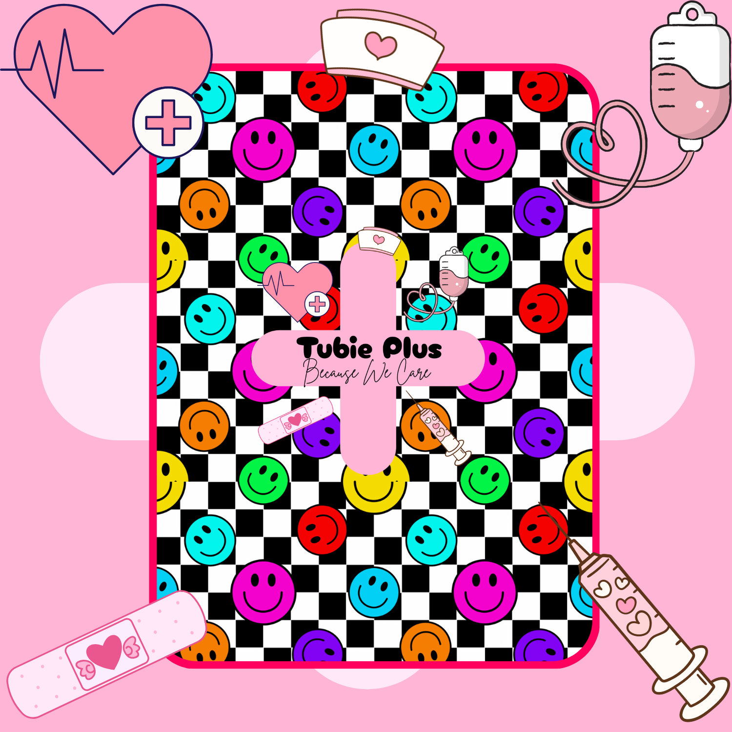 Bright Smiley Check Tubie Scrunchie
