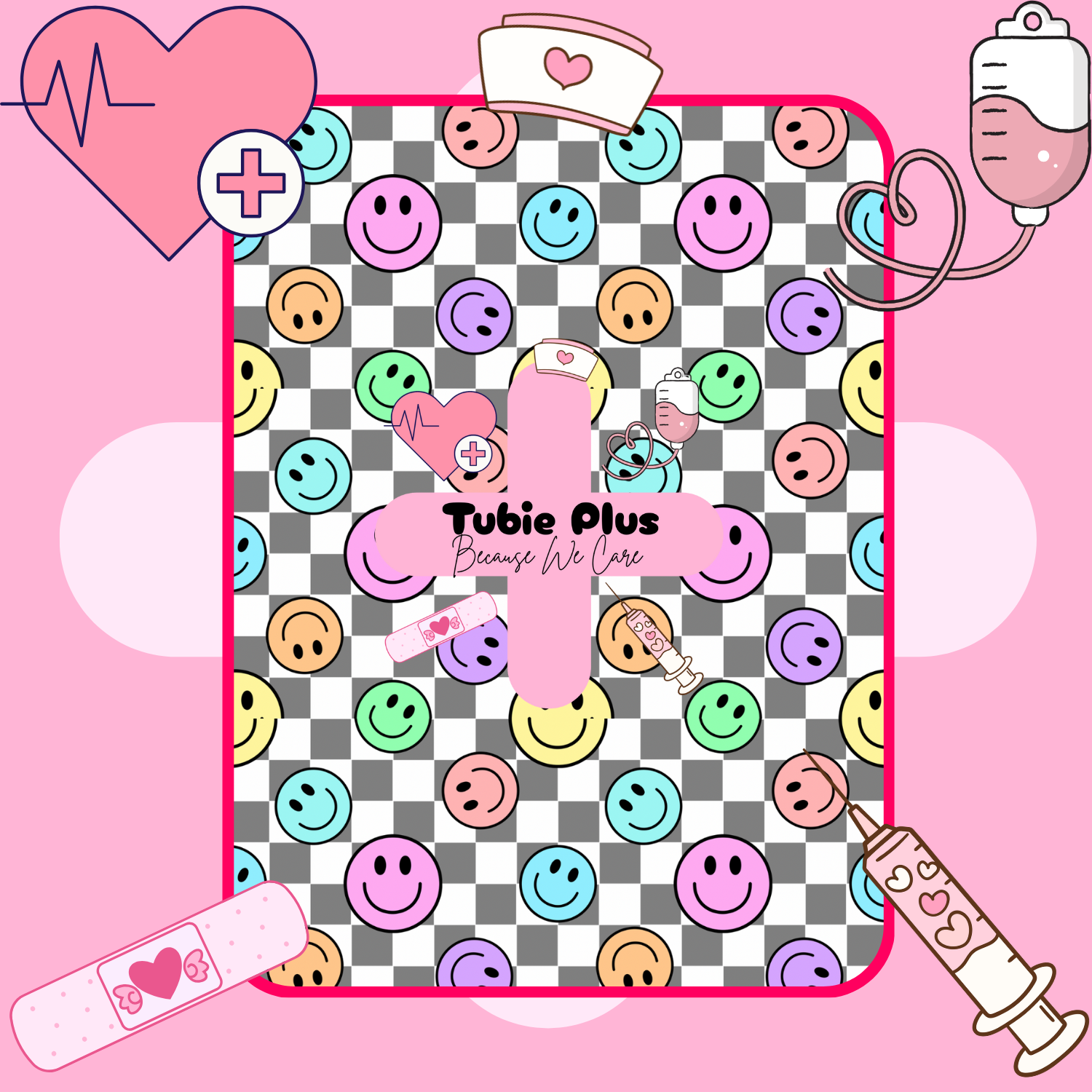 Pastel Smiley Check Tubie Scrunchie