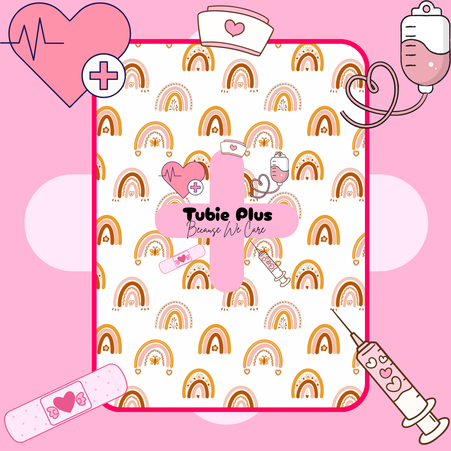 Tubie Plus 2 in 1 Syringe Roll & Medication Mat and are great for on the go or being at home, sewn in elastic syringe holder with a popper to move elastic & syringes to access the mat to place syringes on to catch any accidental drips or spills.